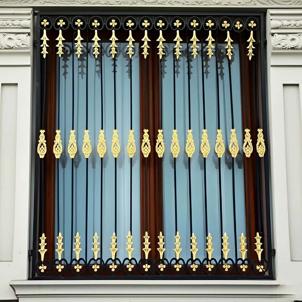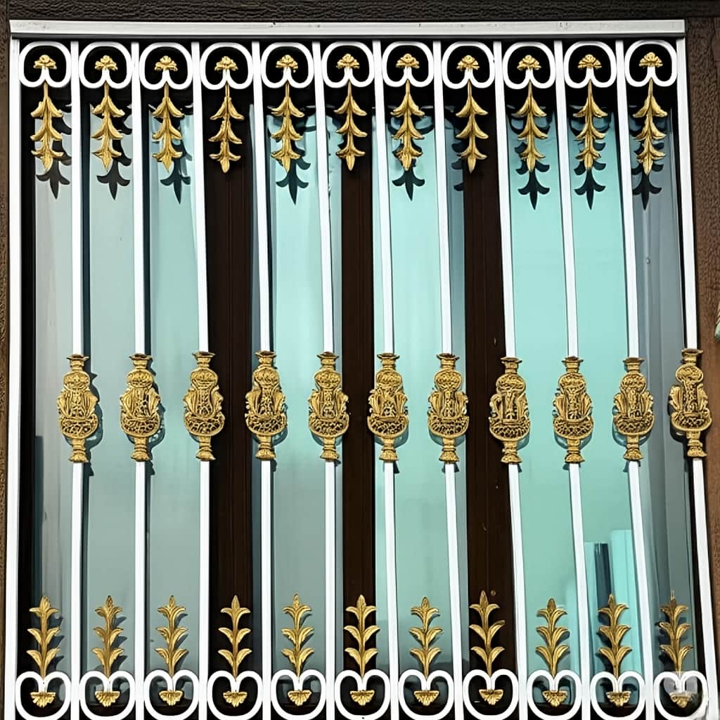 حفاظ پنجره مدل افشان با طراحی فاخر و ترکیب رنگ سفید و طلایی, جلوه ای سلطنتی به ساختمان می بخشد و در عین حال نقش حفاظتی کامل ایفا می کند. این مدل با تزئینات فرفورژه و قطعات آبکاری شده, ترکیبی از امنیت و زیبایی را در قالبی هنری ارائه می دهد. میله های عمودی از پروفیل آهنی 20×20 میلی متر ساخته شده اند و قاب اصلی از پروفیل 30×30 میلی متر با جوش CO2 دقیق شکل می گیرد. تزئینات طلایی میانی به صورت گلدانی و افشان در بالای قاب قرار گرفته اند که باعث می شود نور طبیعی روی آن منعکس و جلوه ای چشم نواز ایجاد شود. علاوه بر این, پوشش پودری الکترواستاتیک مقاومت حفاظ را در برابر زنگ زدگی افزایش داده و دوام رنگ را تضمین می کند. استفاده از متریال فولاد کم کربن S355 و رنگ کوره ای چندمرحله ای, ماندگاری طولانی مدت و مقاومت در برابر شرایط جوی مختلف را فراهم می سازد. این نوع حفاظ برای ساختمان هایی با نمای کلاسیک, نئوکلاسیک و رومی مناسب است و با درب ها و نرده های تزئینی هماهنگی کامل دارد. قیمت تقریبی آن با توجه به تراکم تزئینات و نوع آبکاری, حدود 2/010/000 تا 2/490/000 تومان برای هر مترمربع است و محاسبه آن بر اساس فرمول قیمت تقریبی = متراژ × نرخ پایه × ضریب متریال انجام می شود. تأکید می گردد قیمت ها حدودی اند و برای استعلام دقیق باید تماس بگیرید. در نتیجه, حفاظ پنجره مدل افشان انتخابی مناسب برای کسانی است که به دنبال ترکیب امنیت و شکوه در نمای ساختمان خود هستند.