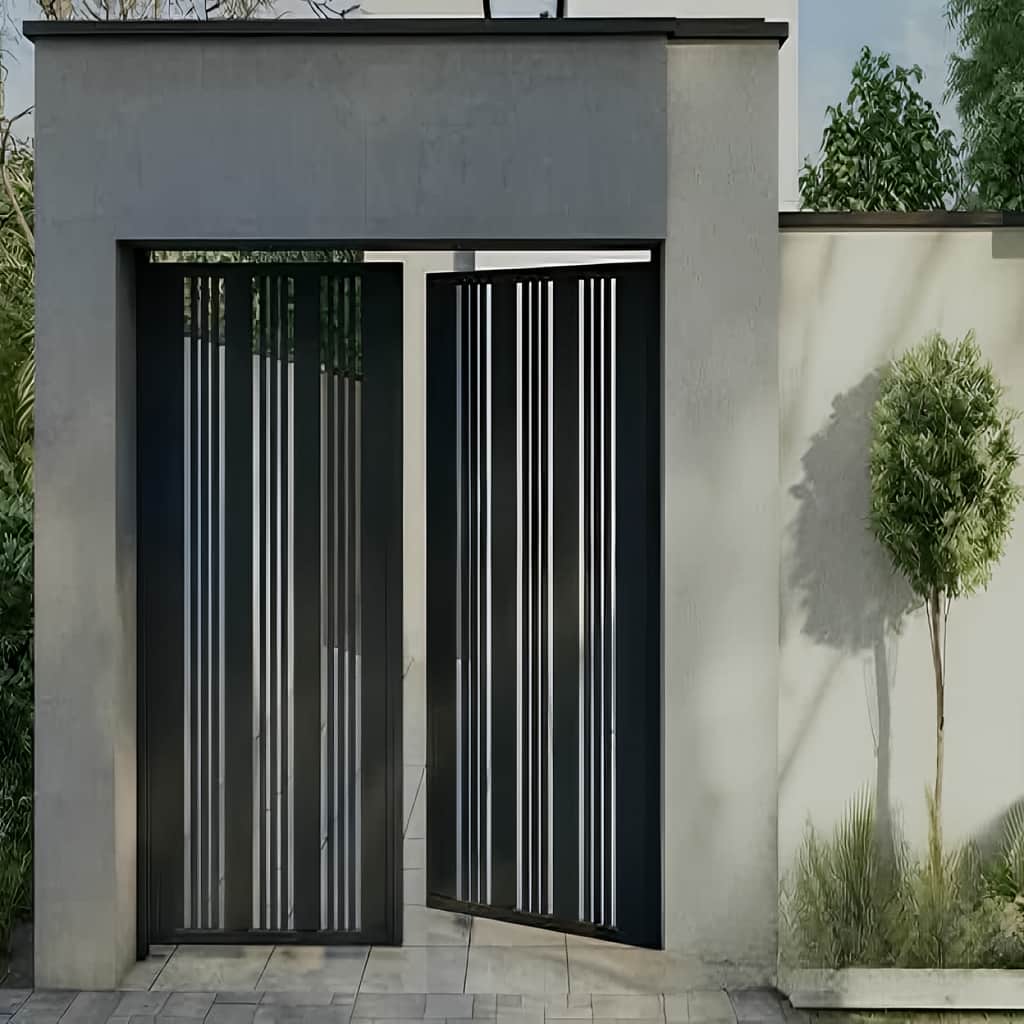 این مدل قابلیت اجرا به صورت لولایی دو لنگه یا درب ریلی کشویی را دارد و بر اساس شرایط دیوار کناری, فضای پارکینگ و محدودیت محوطه, نوع بازشو انتخاب می شود تا عملکرد رفت و آمد و تردد خودروها بدون مزاحمت انجام گیرد.