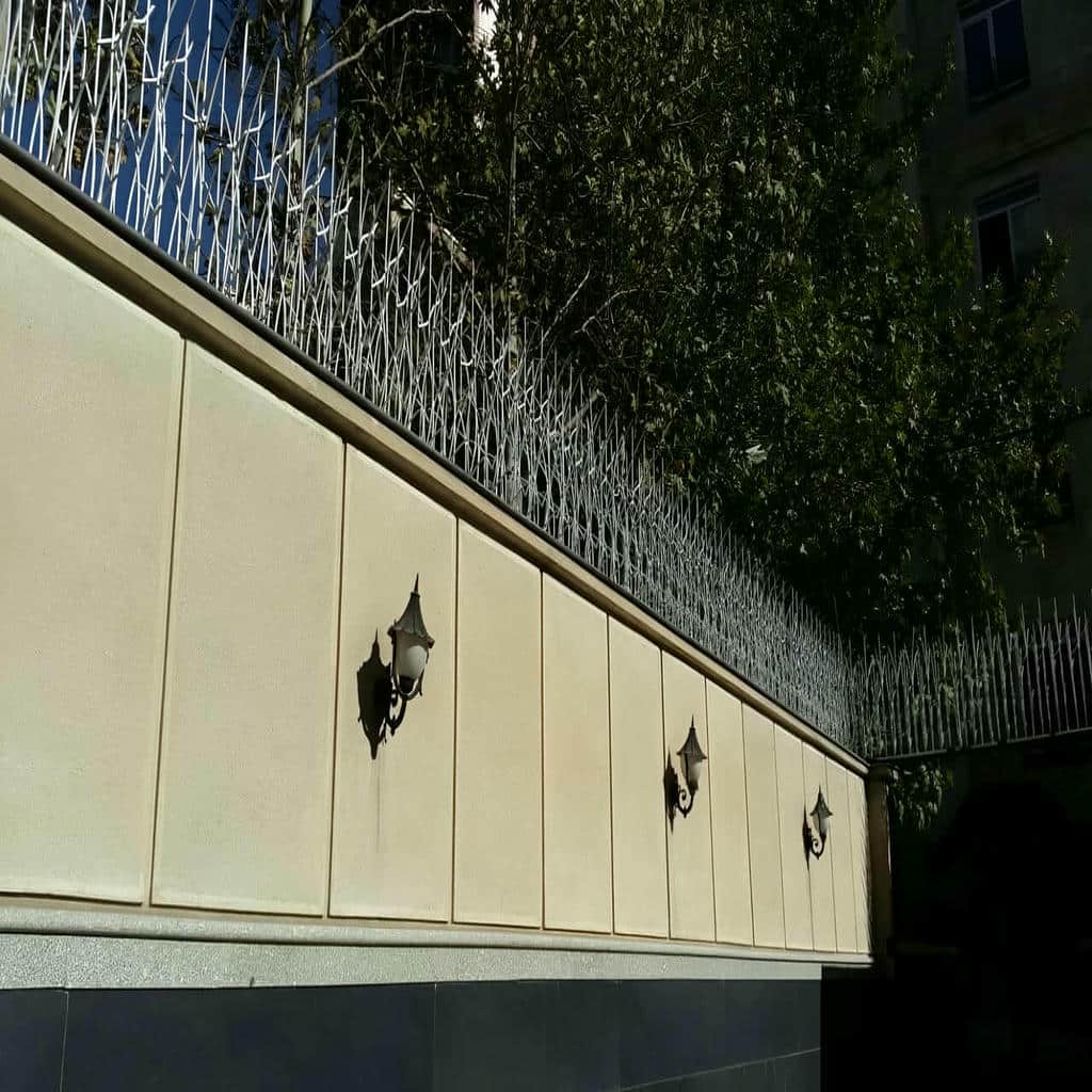 حفاظ شاخ گوزنی به دلیل طراحی منحصر به فرد خود, به یکی از محبوب ترین مدل های حفاظ دیواری تبدیل شده است. این نوع حفاظ از میلگردهای فولادی با قطر 10 تا 12 میلی متر ساخته می شود که شاخه های آن در جهات مختلف خم شده اند تا هیچ سطح صافی برای عبور باقی نماند. جوشکاری در این محصول با گاز CO2 انجام می شود که موجب افزایش استحکام و دوام اتصالات می گردد. علاوه بر این, رنگ پودری الکترواستاتیک که در دمای 200 درجه سانتی گراد پخته می شود, باعث می شود پوشش رنگ در برابر اشعه UV و باران مقاوم بماند. ارتفاع معمولی حفاظ ها بین 80 تا 120 سانتی متر است و تراکم شاخه ها از 30 تا 50 عدد در هر متر متغیر می باشد. کاربرد اصلی حفاظ شاخ گوزنی در دیوارهای آپارتمان ها, ویلاها و مراکز اداری است. قیمت حدودی هر متر حفاظ شاخ گوزنی از 305/000 تا 2/000/000 تومان متغیر است و با افزایش تراکم یا ارتفاع, هزینه افزایش می یابد. فرمول محاسبه نیز به شکل «قیمت تقریبی = متراژ × نرخ پایه × ضریب متریال» تعریف می شود. رعایت نکات اجرایی مانند تراز بودن سطح دیوار و جوشکاری اصولی, تضمین کننده عملکرد ایمن حفاظ است. در نتیجه, می توان گفت این مدل حفاظ ترکیبی از زیبایی, استحکام و امنیت را فراهم می کند.